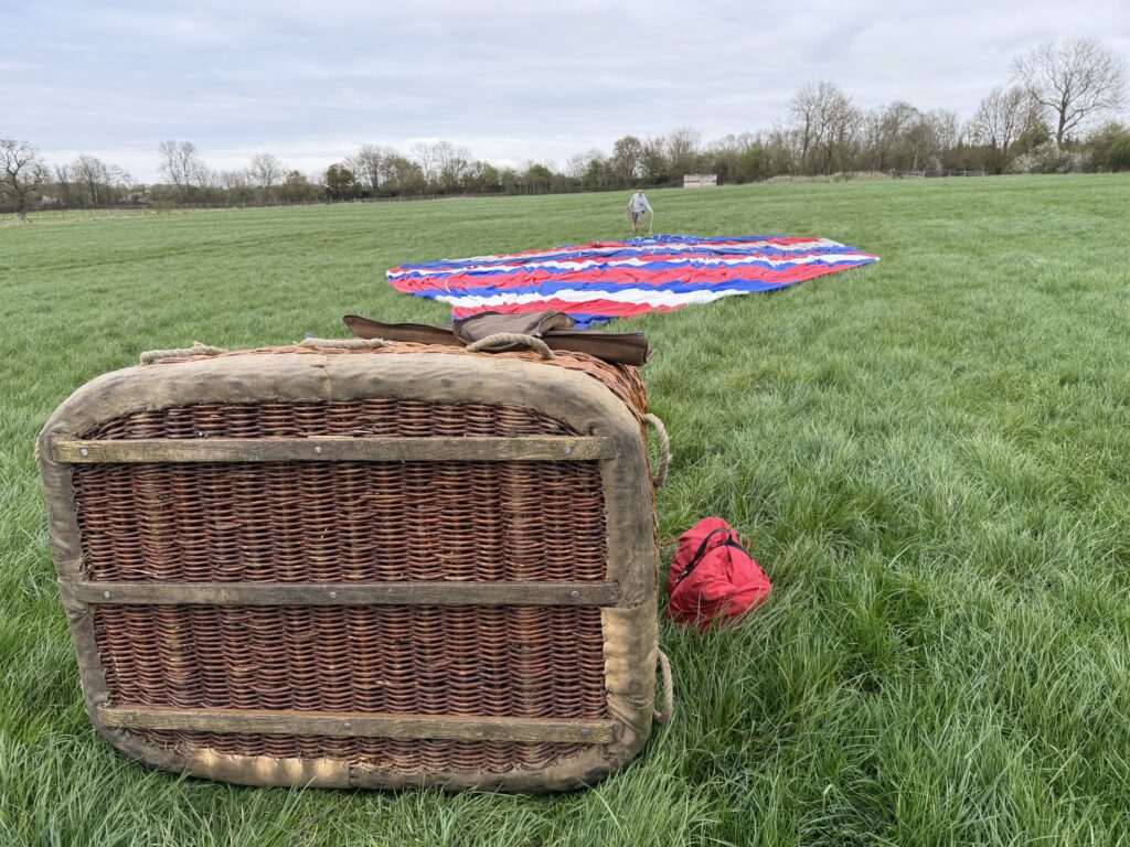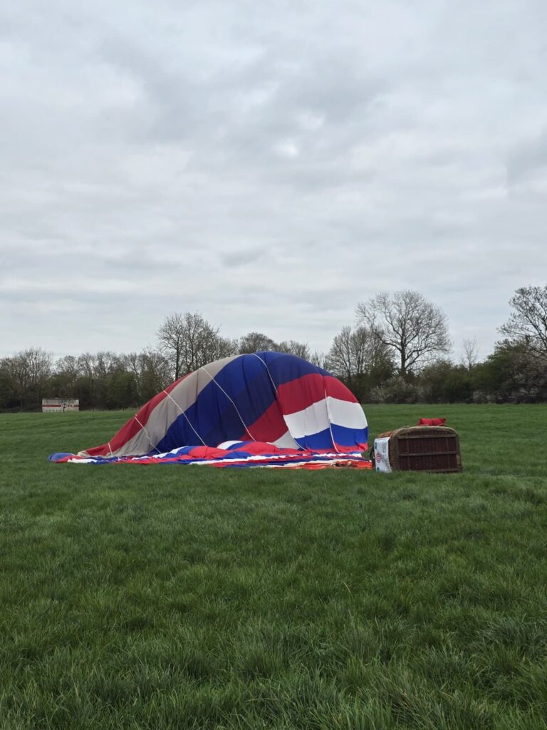 After a change of launch sites last minute due to a missing key the team made up lost time and the balloon was soon in the air. Jamie, Liam, and a lovely family enjoyed a stunning hours flight over Northampton and out to Harpole. A lovely dry grass field was soon located and a gentle landing followed. The passengers loved the experience and were fantastic throughout the whole flight. Liam used the flight to navigate on a paper map, so it was helpful for him in that respect too. We were once again blessed with a lovely landowner which brought the whole day to a lovely end.