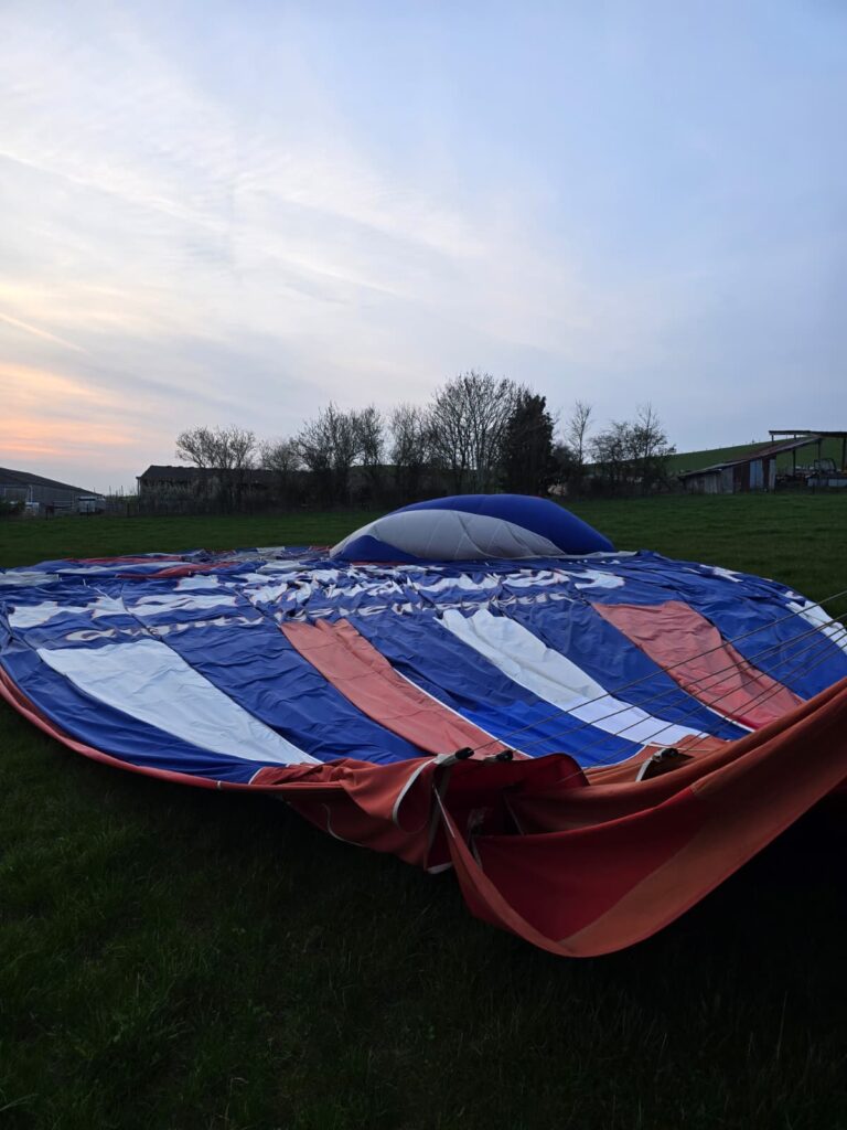 After another half an hour another suitable field came up. This time with clear access to a farm compound and the main road. Liam made his first landing of 2026 on a lovely farm called Warrington Lodge (not named after the legendary balloon instructor!). Jamie and Liam were greeted by a lovely family who owned the farm and who were more than happy with the balloon being recovered. After a quick pack up, the first adventure of 2026 was in the bag. Two (genuine) flights in one as well, everything worked out for the best and both Jamie and Liam achieved what they set out to do.