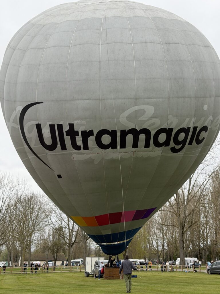 This would prove an ideal progress check for Liam’s training and would give us a good idea of focus points for the last phase of his journey. Prior to the flight Jamie briefed Liam and set the expectations that he would lead every aspect of the flight with minimal input. To say Liam rose to the challenge is an understatement. Liam was thorough in all areas of his preflight preparation, and his briefings were spot on too. Matt from Vista Balloon Flights brought his newly rebranded UM 145 G-CLUY along and launched first. The envelope looks awesome with Vista and Ultramagic artwork.